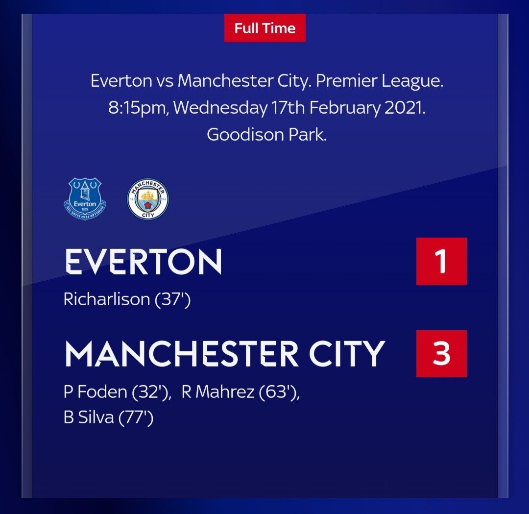 한국시간 2월 18일 오전 5시 15분 에버튼과 맨체스터 시티의 경기에서 맨시티가 3-1로 승리함으로써 맨시티는 공식 경기 17연승 기록을 이어나가게 됐다.